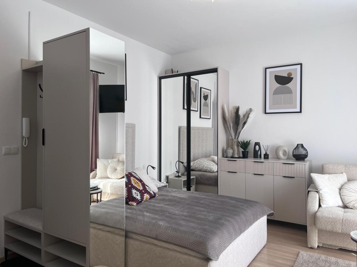 Apartament typu studio z balkonem. Featuring a private entrance, this apartment is comprised of 1 living room, 1 separate bedroom and 1 bathroom with a shower and a hairdryer. Meals can be prepared in the well-fitted kitchenette, which is fitted with a stovetop, a refrigerator, a dishwasher and kitchenware. Boasting a balcony with city views, this apartment also offers a tea and coffee maker and a flat-screen TV. The unit offers 3 beds. Apartament - 4 osobowy. Powierzchnia pokoju ok.: 26 mkw.