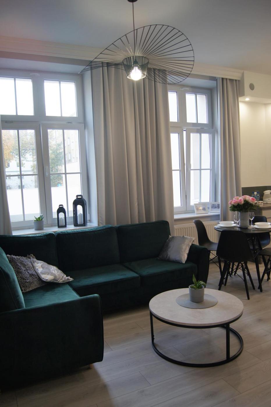 Apartament z 1 sypialnią. This apartment comprises 1 living room, 1 separate bedroom and 1 bathroom with a walk-in shower and a hairdryer. Guests can make meals in the kitchen that comes with a stovetop, a refrigerator, kitchenware and a microwave. The apartment provides a flat-screen TV with cable channels, a washing machine, a tea and coffee maker, a seating area as well as ancourtyard view. The unit offers 1 bed. Apartament - 2 osobowy. Powierzchnia pokoju ok.: 35 mkw.